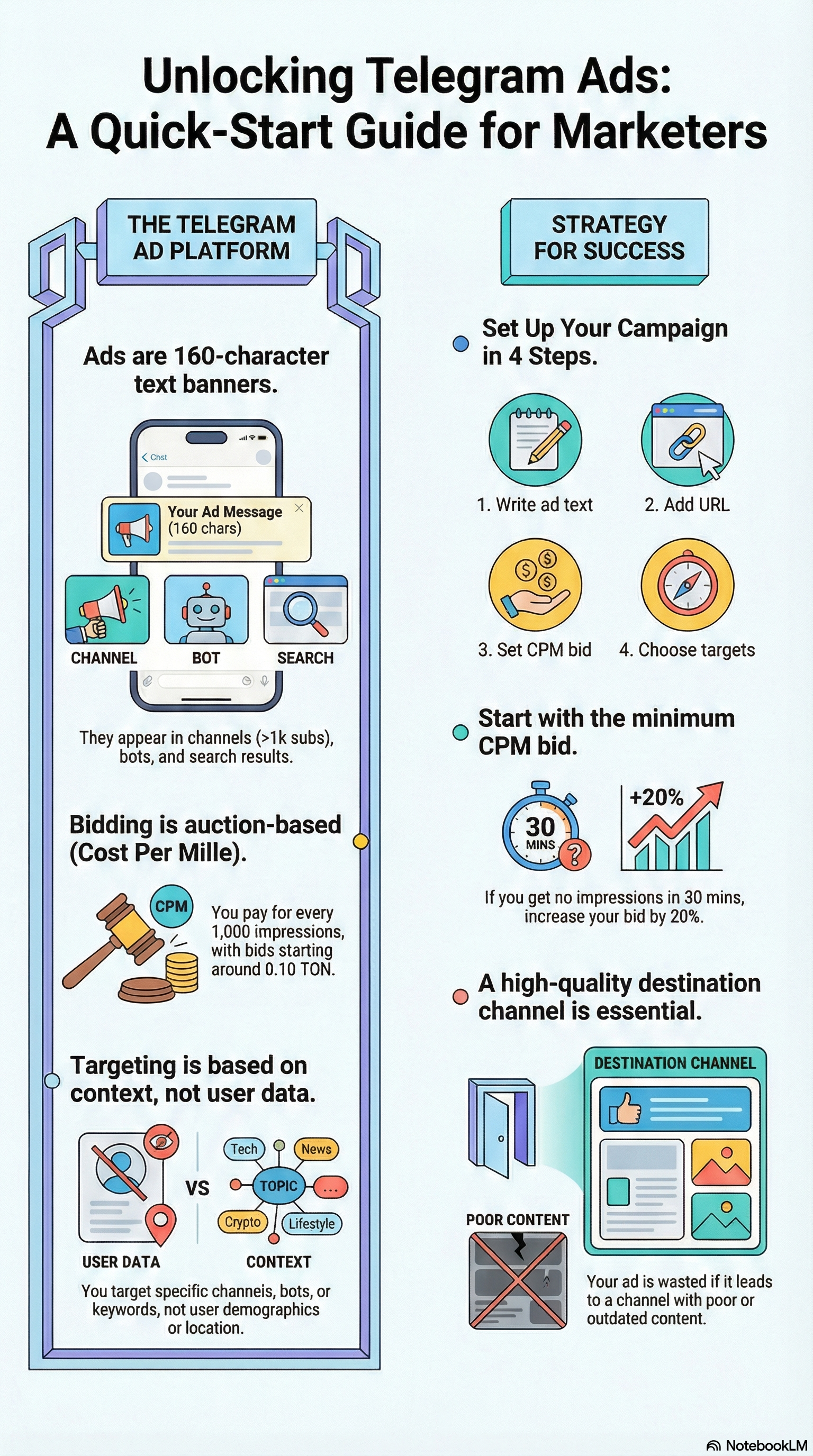 Telegram ads in 2026 are about reaching the right people, not shouting at everyone. Strong ad management turns Telegram into a clear growth channel by handling rules, testing, and optimization, so campaigns stay focused and effective while you stay focused on your business.
